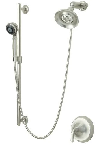 • Package includes a multifunction handshower and showerhead, showerarm with diverter, slide bar kit and Forte valve trim