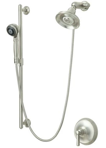 • Package includes a multifunction handshower and showerhead, showerarm with diverter, slide bar kit and Bancroft valve trim