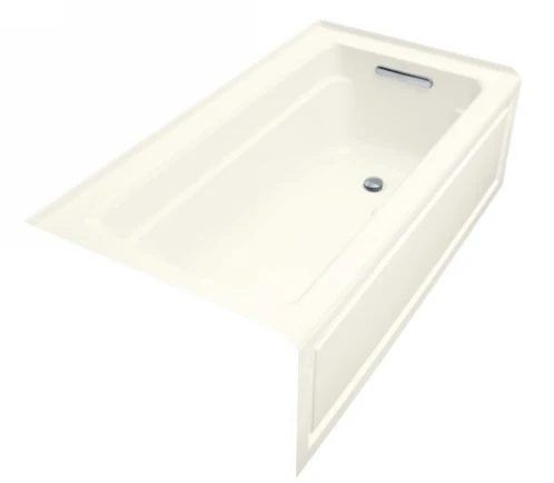 K1122GRABI Kohler Archer Bubble Massage 5′ Bath With Comfort Depth Design Integral Apron And Right-Hand Drain – Biscuit The Archer BubbleMassage bath features Comfort Depth design, a deep soaking experience with a low step-over height. This exclusive design offers a relaxing bath experience that is easy to enter and exit. Water depth is raised to the same level as a standard 20″ – 21″ tall bath through the unique slotted overflow. The transitional aesthetic of the Archer Suite also complements many different bathroom decors. Â