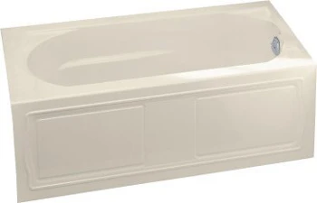 Devonshire® bath with integral apron, tile flange and right-hand drain. Capturing the elegance of a bygone era, this Devonshire bath with right-hand drain is reminiscent of old-world design. High-quality acrylic construction ensures durability and luster, and a palette of KOHLER colors is available to complement any decor. The integral apron and tile flange simplify installation and prevent the possibility of behind-the-wall water damage.