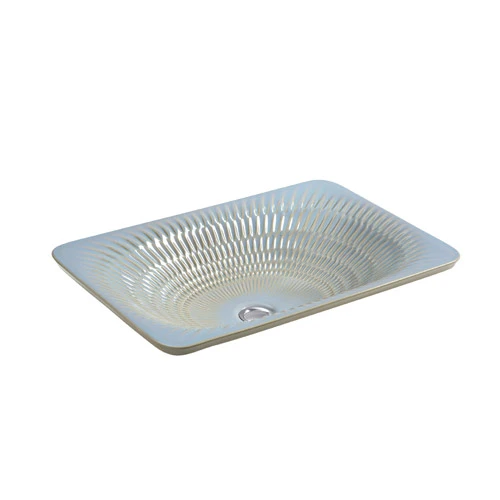 - Rectangular basin with carved textural pattern.
