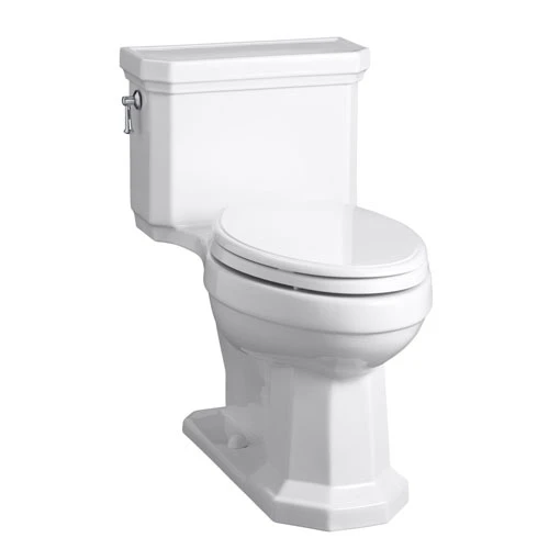 Capture the classic look of the 1930s with the Kathryn collection’s angular lines and molded edges. This one-piece toilet features a convenient chair-like height and compact elongated bowl for comfortable use, as well as a concealed trapway for sleek looks and simple cleaning. A 1.28-gallon flush provides significant water savings of up to 16,500 gallons per year, compared to a 3.5-gallon toilet, without sacrificing performance. This tank features innovative AquaPiston technology, a patented flush engine that delivers a fast, powerful, and virtually plug-free flush.