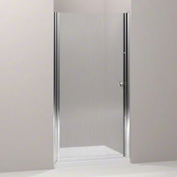 K-702408-G54-SH Kohler Fluence 33.75″- 35.25″ W x 65.5″ H Frameless Pivot Shower Door with Falling Lines Glass – Bright Silver