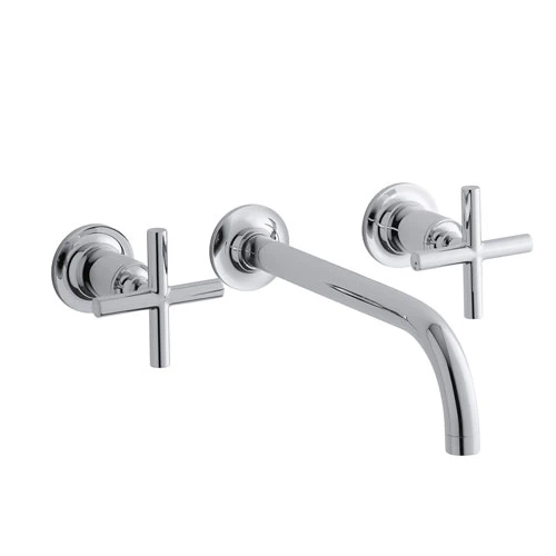 Capturing the style of minimalist design, Purist faucets deliver streamlined water control. This sink faucet trim features a 90-degree angled spout and cross handles for easy operation. The convenient wall-mount design provides a clutter-free countertop in your bath or powder room. When paired with two-handle ceramic disc valves, this trim offers optimal performance.