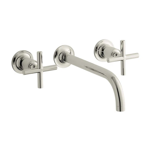 K-T14414-3-SN Kohler Purist Two Handle Wall Mount Lavatory Faucet Trim with 9 in, 90-degree Angle Spout and Cross Handles – Polished Nickel