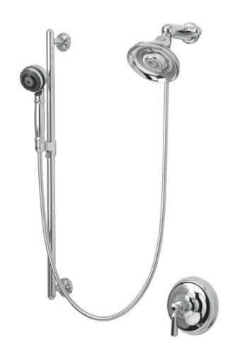 • Package includes a multifunction handshower and showerhead, showerarm with diverter, slide bar kit and Bancroft valve trim